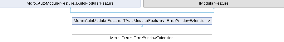 Public Member Functions inherited from Mcro::AutoModularFeature::TAutoModularFeature< IErrorWindowExtension > | |